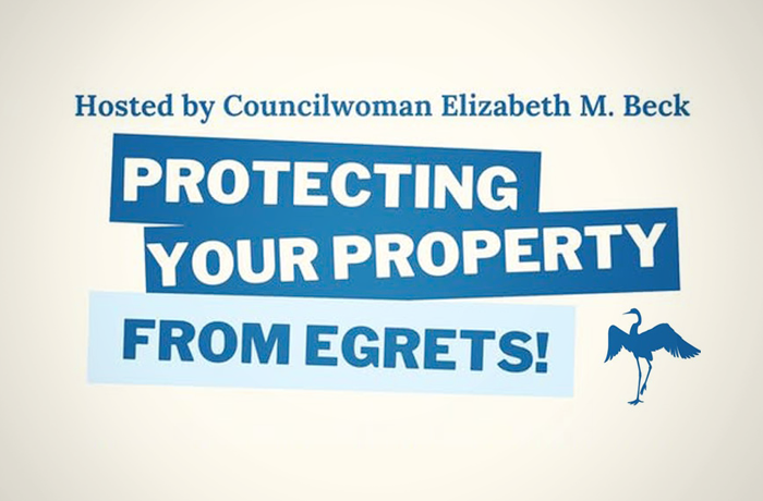 Join Councilwoman Elizabeth M. Beck for an educational session on how to keep egrets off your property.
